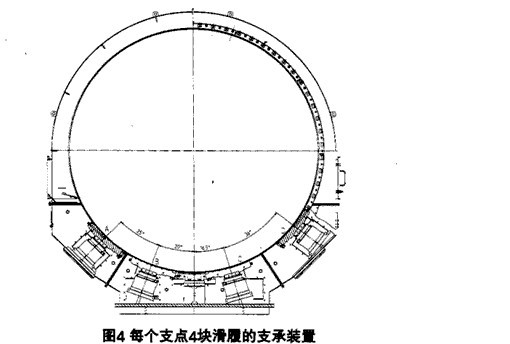 改進球磨機滑履軸承的措施有很多種方法,下面我們吉宏球磨機廠家為您介紹的是每個支點采用4塊滑履的結構。